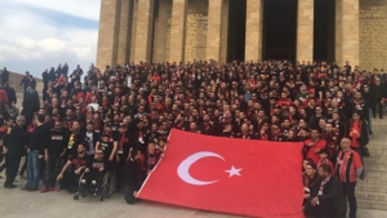 Osmanlıspor maçı için Ankara'ya giden Eskişehirspor taraftarı maç öncesi Anıtkabir'e gitti.
